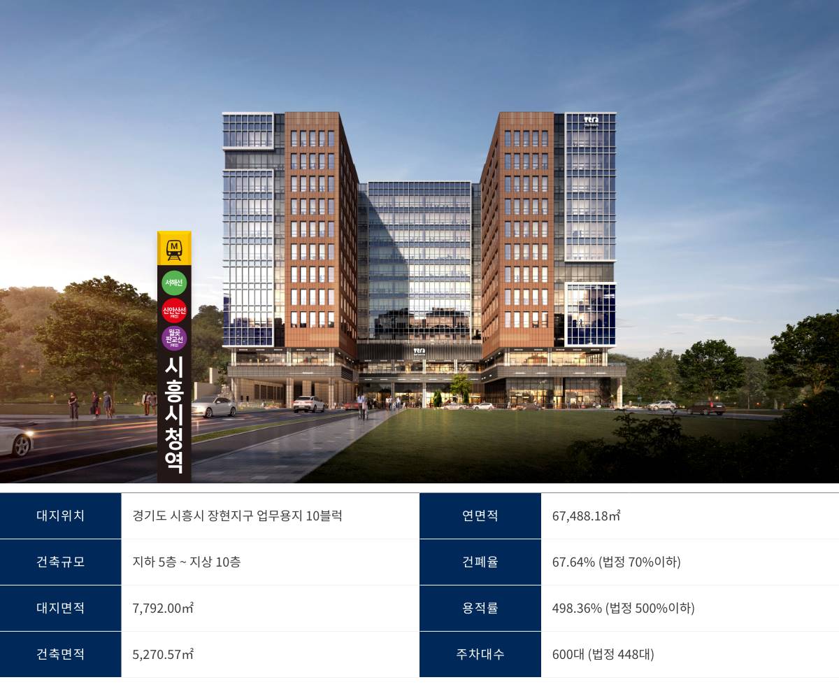 서해선 신안산선 월판선 트리플 역세권 시흥시청역을 중심으로 펼쳐지는 수도권 서남부 교통 거점 현재 운행 중인 서해선과 개통 예정인 신안산선, 월곶판교선을 모두 누리는 압도적인 트리플 역세권의 교통 프리미엄을 선점하십시오. 현대엔지니어링 테라타워 브랜드 프리미엄 지식산업센터 시장을 선도하는 1군 건설사의 가치 압도적인 브랜드 인지도를 가진 현대테라타워로 비즈니스의 자부심과 안정적인 자산 가치 상승을 동시에 기대할 수 있습니다. 업무와 휴식이 공존하는 오피스텔형 설계 지상 10층 규모의 복합 비즈니스 타워 구성 오피스, 상업시설, 운동시설이 결합된 복합 단지로 입주사의 업무 효율을 극대화하는 원스톱 비즈니스 환경을 제공합니다. 시흥 장현지구의 풍부한 배후 수요 시흥시청을 중심으로 한 행정타운 배후 입지 시흥시청과 인접한 장현지구 내 핵심 위치로 행정기관 및 협력업체의 풍부한 비즈니스 수요를 직접적으로 흡수합니다. 프라이빗 테라스 및 특화 조경 설계 자연과 함께하는 쾌적한 업무 공간 라이프 일부 호실에 적용되는 개별 테라스와 옥상 정원 등 쾌적한 조경 설계를 통해 도심 속 힐링 업무 환경을 구축했습니다. 수도권 서남부의 쾌속 광역 도로망 제3경인 제2경인 영동고속도로의 완벽한 접점 주요 고속도로 진입이 용이하여 인천, 광명, 안산 등 인근 주요 도시로의 물류 이동과 출퇴근이 매우 신속합니다. 입주사를 위한 다양한 공유 커뮤니티 라운지 세미나실 미팅룸 등 특화 시설 완비 성공적인 비즈니스를 지원하는 커뮤니티 공간을 갖추어 소규모 기업부터 대규모 인원까지 만족시키는 고품격 인프라를 자랑합니다.